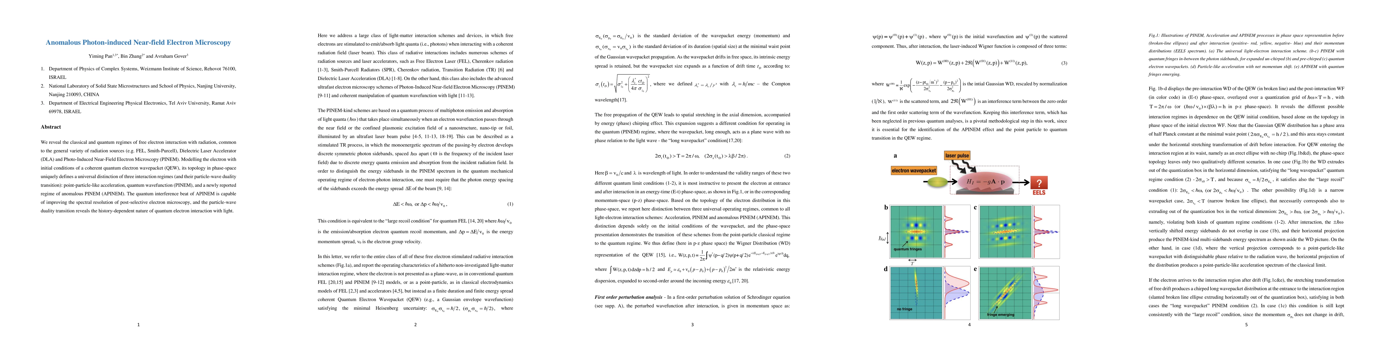 This paper explores the interaction of free electrons with various radiation sources, identifying three distinct regimes of this interaction: point-particle-like acceleration, quantum wavefunction interaction (PINEM), and a novel anomalous PINEM (APINEM) regime. The APINEM regime shows potential to enhance spectral resolution in electron microscopy due to its quantum interference effects.