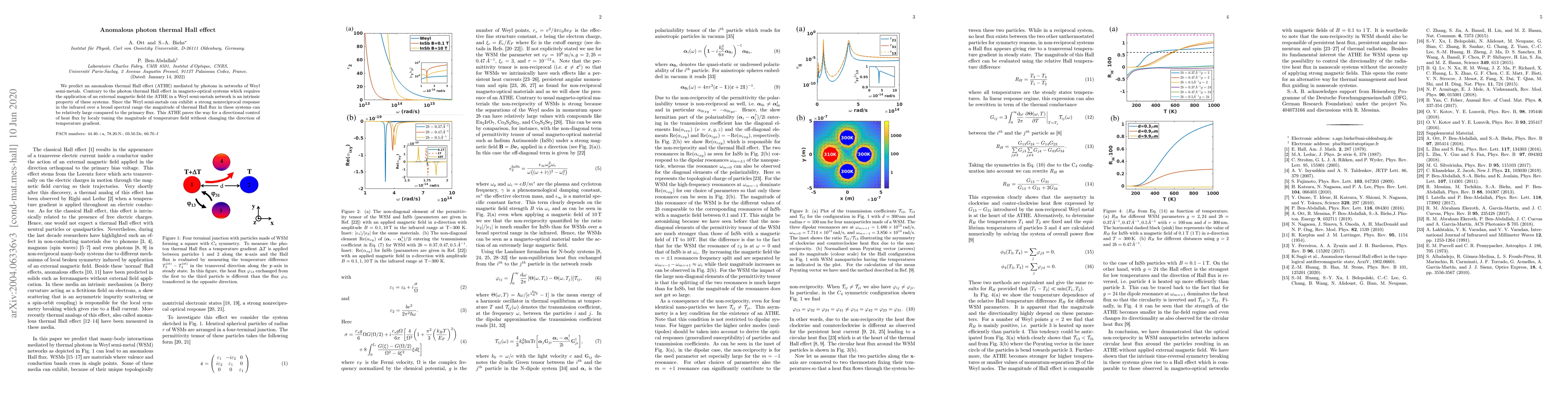 This research predicts an intrinsic anomalous thermal Hall effect (ATHE) in networks of Weyl semi-metals, driven by photons without an external magnetic field, offering a large thermal Hall flux and enabling directional heat flux control via local temperature adjustments.