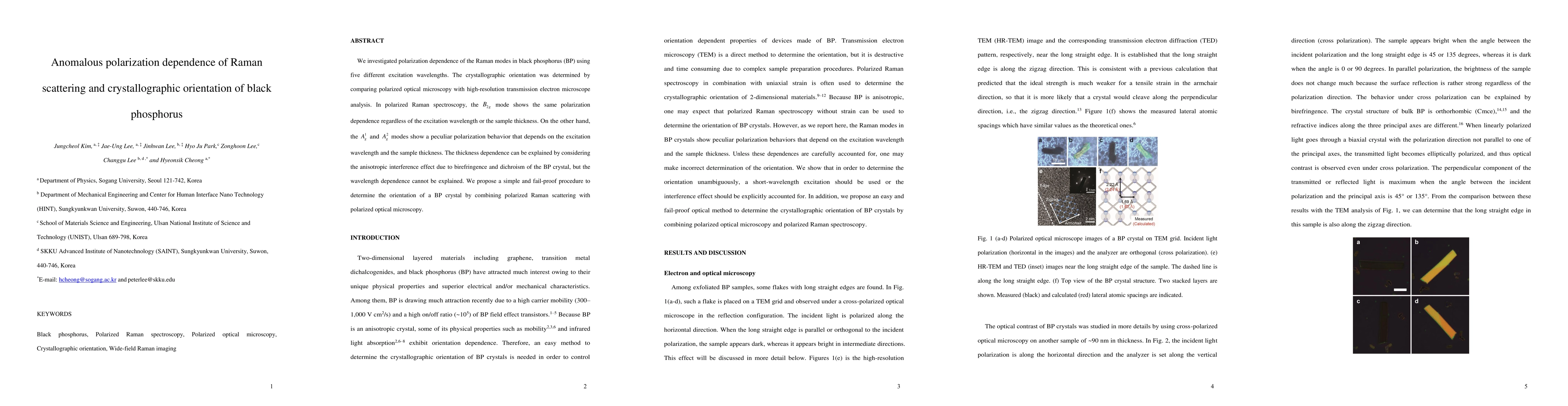 This paper investigates the polarization dependence of Raman scattering in black phosphorus, revealing that the B2g mode maintains consistent polarization behavior while Ag1 and Ag2 modes exhibit wavelength- and thickness-dependent polarization. The study proposes a method to determine crystallographic orientation using combined Raman and optical microscopy techniques.