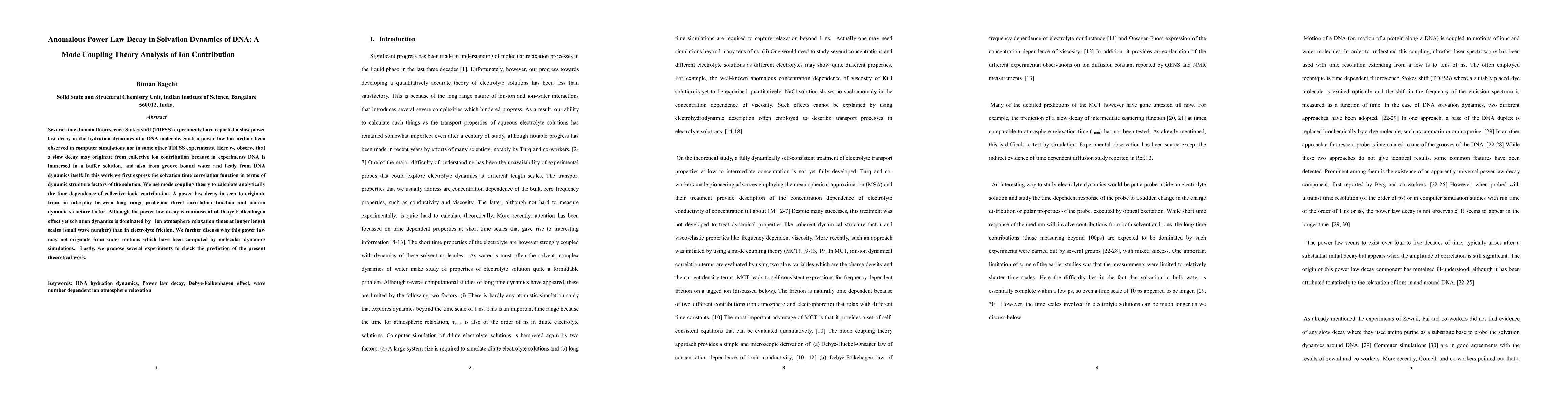 Researchers discover a slow power law decay in DNA solvation dynamics that may originate from collective ion contribution, water motions, and DNA dynamics itself. They propose experiments to verify their theory.