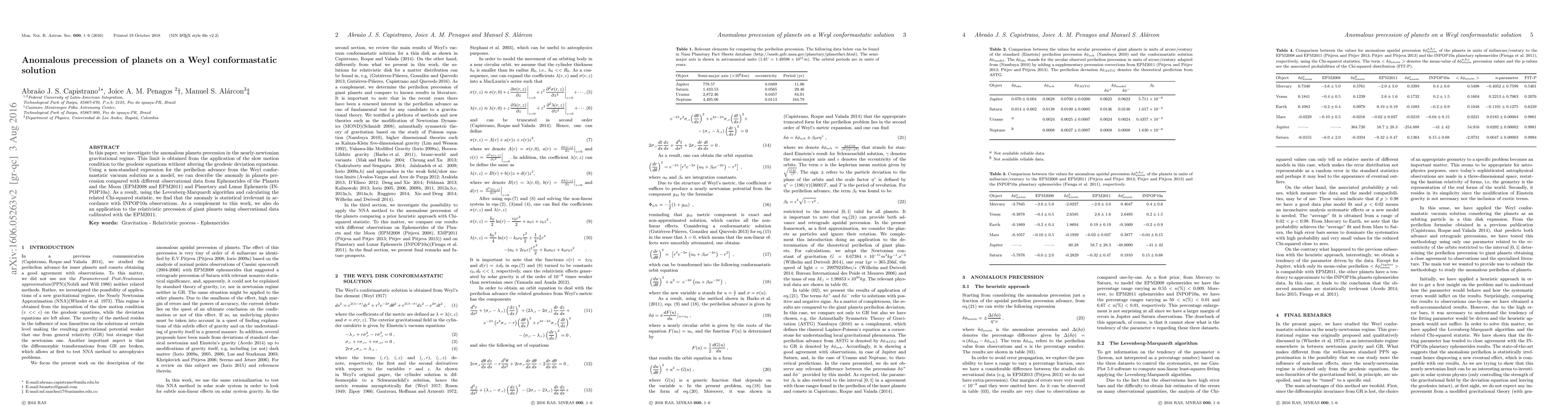 In this paper, we investigate the anomalous planets precession in the nearly-newtonian gravitational regime. This limit is obtained from the application of the slow motion condition to the geodesic equations without altering the geodesic deviation equations. Using a non-standard expression for the perihelion advance from the Weyl conformastatic vacuum solution as a model, we can describe the anomaly in planets precession compared with different observational data from Ephemerides of the Planets and the Moon (EPM2008 and EPM2011) and Planetary and Lunar Ephemeris (INPOP10a). As a result, using the Levenberg-Marquardt algorithm and calculating the related Chi-squared statistic, we find that the anomaly is statistical irrelevant in accordance with INPOP10a observations. As a complement to this work, we also do an application to the relativistic precession of giant planets using observational data calibrated with the EPM2011.