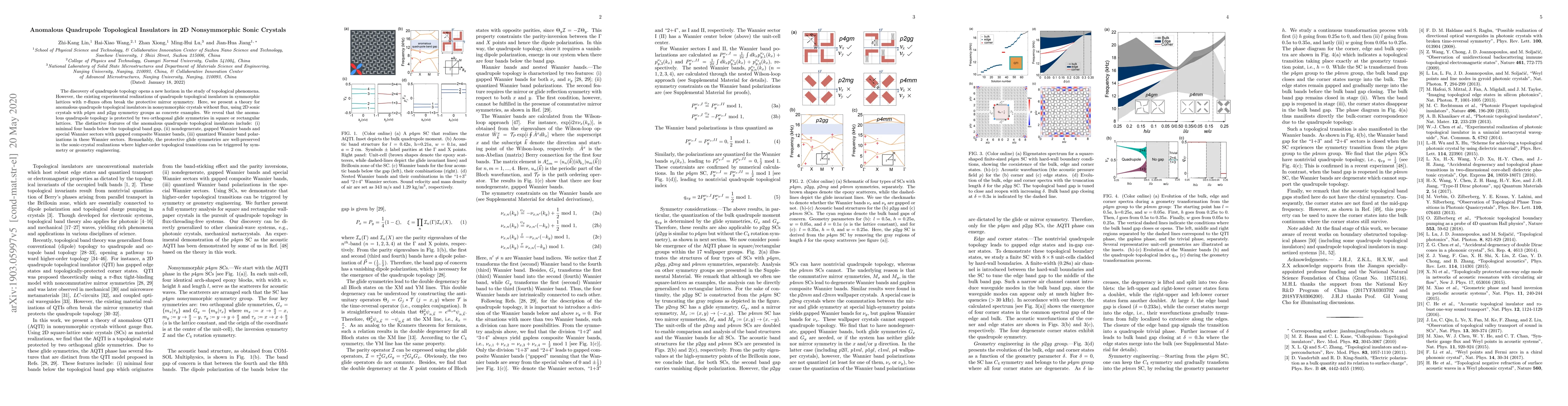 This paper proposes a theoretical framework for anomalous quadrupole topological insulators in 2D nonsymmorphic sonic crystals without $\pi$-fluxes, highlighting their protection by glide symmetries and showcasing their unique features, including quantized Wannier band polarizations and higher-order topological transitions achievable through symmetry or geometry engineering.