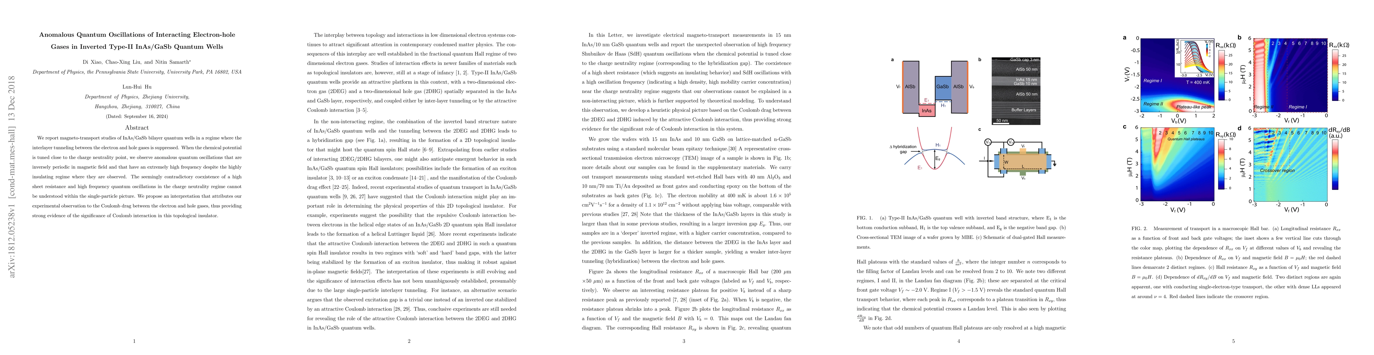 This paper reports on magneto-transport studies revealing anomalous quantum oscillations in InAs/GaSb quantum wells near the charge neutrality point, characterized by high-frequency oscillations despite a highly insulating regime. The observed phenomena suggest Coulomb drag between electron and hole gases, highlighting the importance of Coulomb interactions in topological insulators.