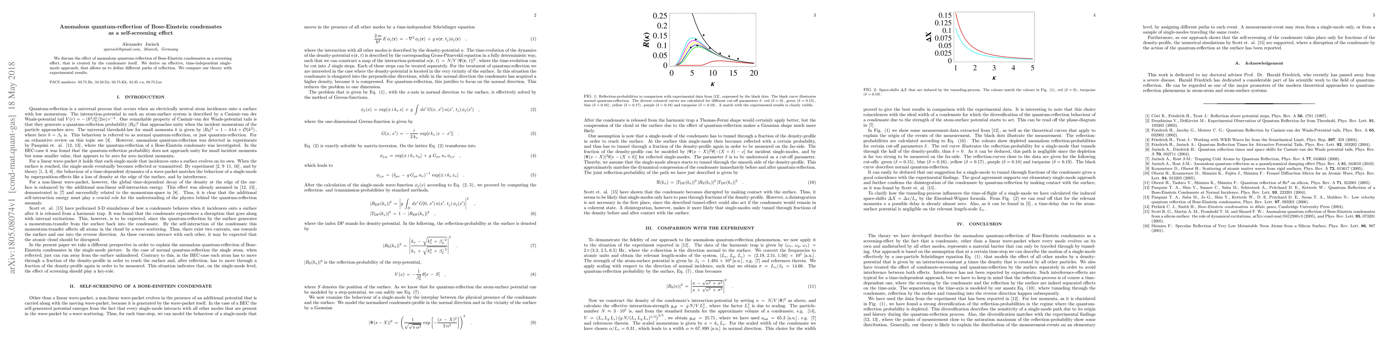 We discuss the effect of anomalous quantum-reflection of Bose-Einstein condensates as a screening effect, that is created by the condensate itself. We derive an effective, time-independent single-mode approach, that allows us to define different paths of reflection. We compare our theory with experimental results.