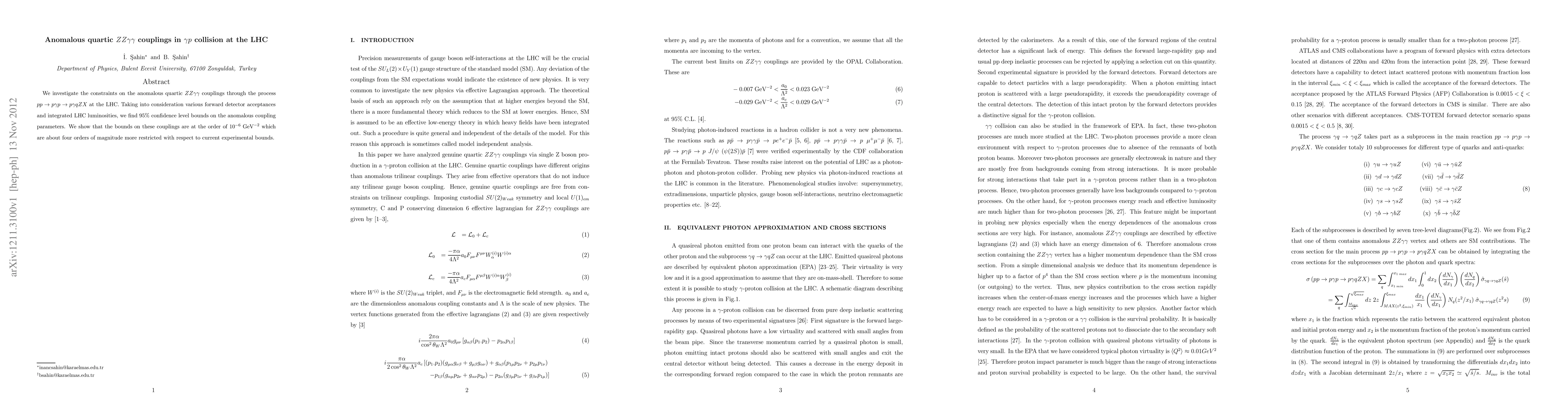 This paper investigates constraints on anomalous quartic $ZZ\gamma\gamma$ couplings via $p p\to p\gamma p\to p \gamma q Z X$ at the LHC, finding 95% confidence level bounds of $10^{-6}GeV^{-2}$, significantly improving upon current experimental limits by four orders of magnitude.