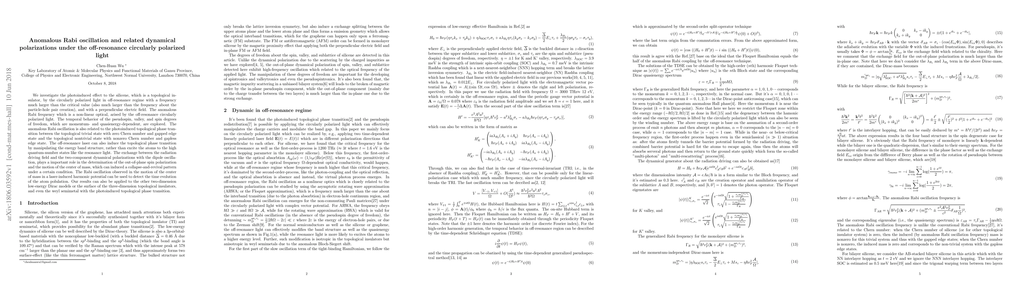 Researchers investigate how circularly polarized light affects silicene, a topological insulator, leading to Rabi oscillation and photoinduced phase transitions. The study reveals new insights into the behavior of electrons under off-resonance light and potential applications in detecting time evolution of atom populations.