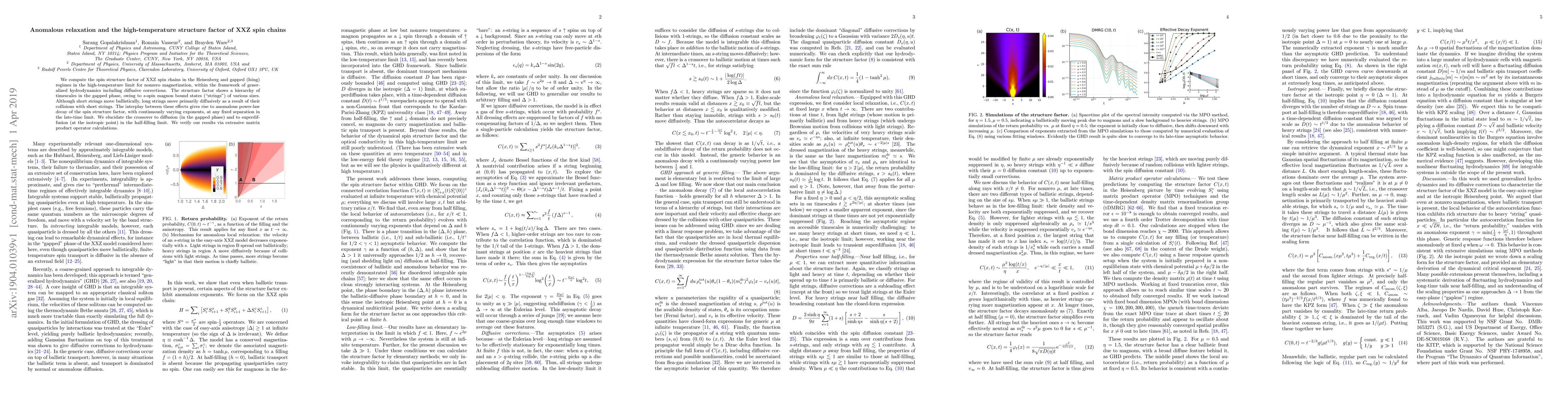This paper explores the high-temperature structure factor of XXZ spin chains in both Heisenberg and gapped regimes, revealing anomalous relaxation due to varying timescales from different magnon bound states. The study shows a transition from ballistic to diffusive behavior in the gapped phase, leading to a power-law decay of the spin structure factor.