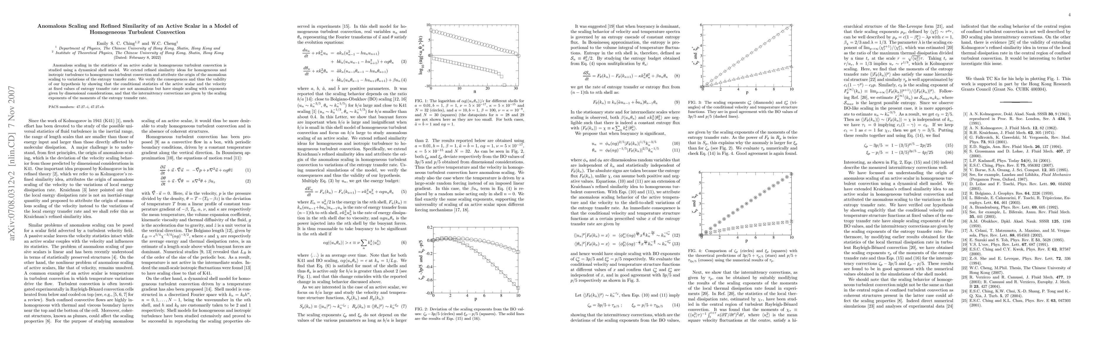 This paper explores anomalous scaling in an active scalar within homogeneous turbulent convection using a dynamical shell model, extending refined similarity concepts to this context. The study attributes the anomalous scaling to variations in the entropy transfer rate, confirming the hypothesis through conditional statistics that show simple scaling when entropy transfer rate is fixed.