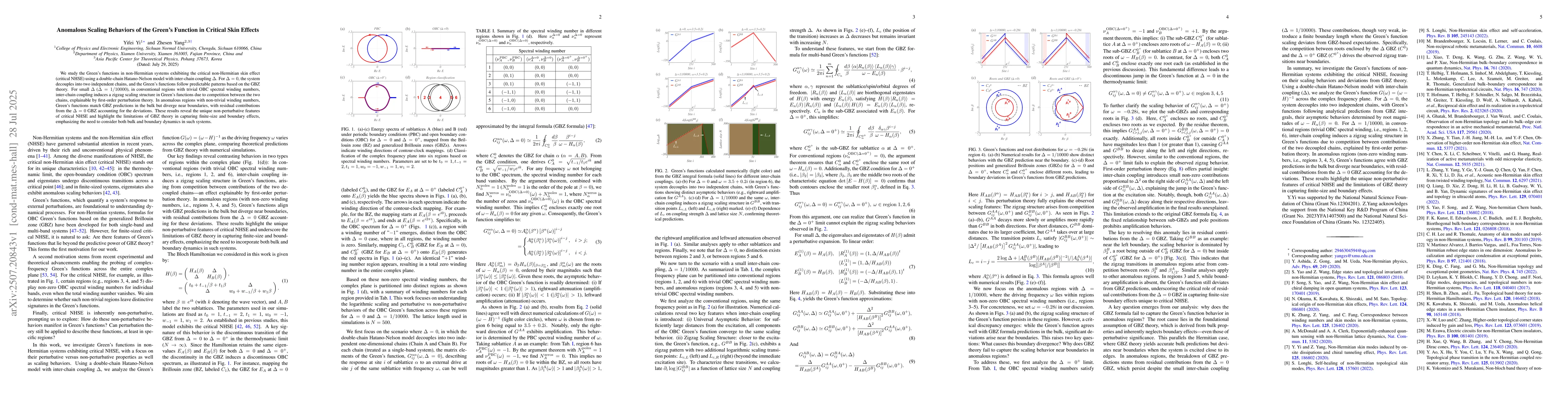 The paper presents a detailed analysis of Green's functions in non-Hermitian systems undergoing critical NHSE, revealing unique non-perturbative features and the limitations of GBZ theory in capturing finite-size and boundary effects.