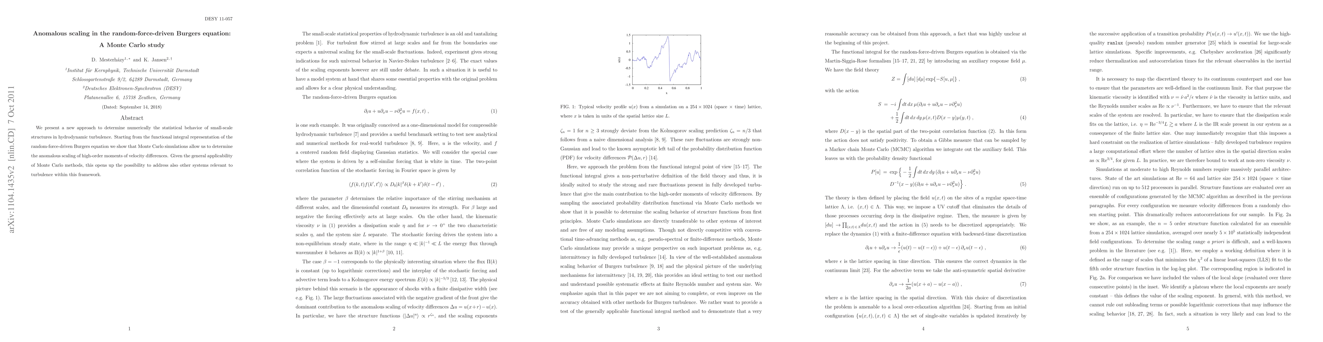 Summary: This paper introduces a Monte Carlo method to numerically analyze the statistical behavior of small-scale structures in hydrodynamic turbulence, revealing anomalous scaling in high-order moments of velocity differences through the random-force-driven Burgers equation. The approach's general applicability suggests its potential for studying other turbulent systems.