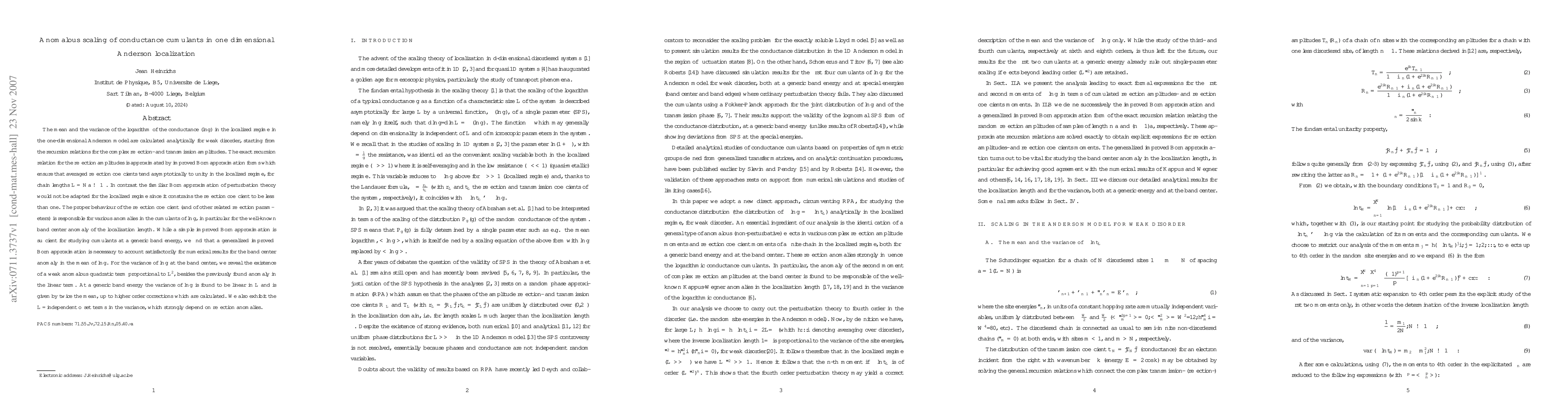 This paper analytically calculates the mean and variance of the logarithm of conductance in the localized regime of the one-dimensional Anderson model using improved Born approximation forms. It reveals anomalies in conductance cumulants, including a quadratic term in the variance at the band center and discusses the importance of reflection coefficient behavior for these anomalies.