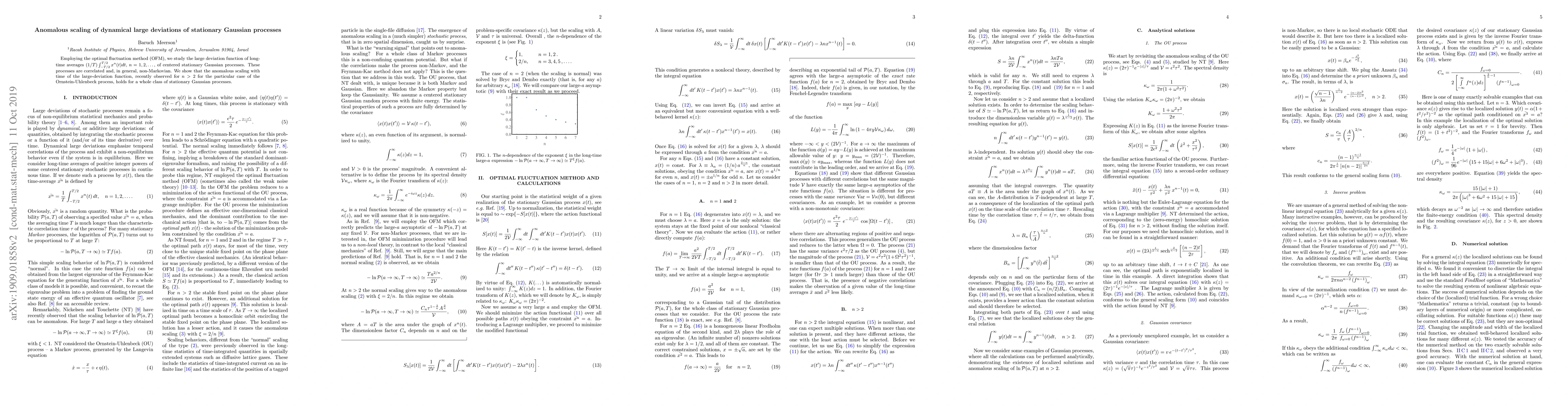 The paper introduces a generalized approach using the OFM to analyze large deviations for correlated, non-Markovian Gaussian processes, revealing a class-wide anomalous scaling behavior for long-time averages.