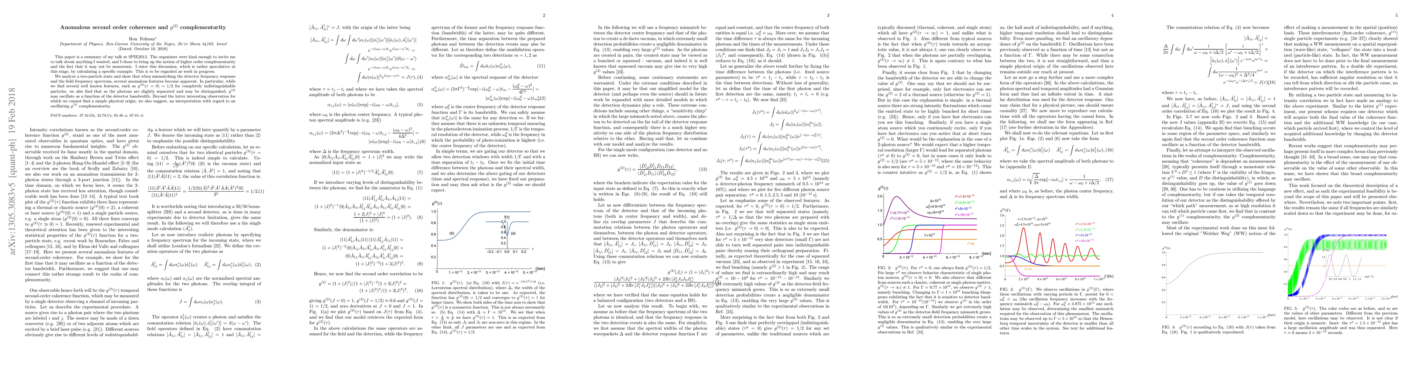 This paper is a summary of my talk at SPIE2013. The organizers were kind enough to invite me to talk about anything I wanted, and I chose to bring up the notion of higher order complementarity and the fact that it may not be monotonic. I enter this discussion, which is rather speculative at this stage, by calculating a specific example. This is to be regarded as work in progress. We analyze a two-particle state and show that when mismatching the detector frequency response and the field frequency spectrum, several anomalous features become apparent. In particular, while we find several well known features, such as $g^{(2)}(\tau=0)=1/2$ for completely indistinguishable particles, we also find that as the photons are slightly separated and may be distinguished, $g^{(2)}$ may oscillate as a function of the detector bandwidth. Beyond the latter interesting observation for which we cannot find a simple physical origin, we also suggest, an interpretation with regard to an oscillating $g^{(2)}$ complementarity.