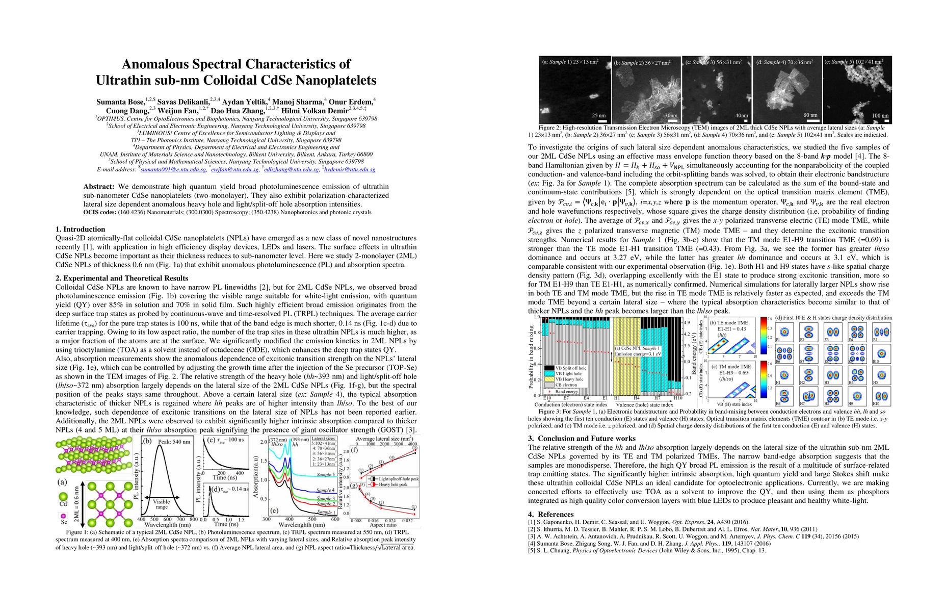 Summary: This study reveals ultrathin sub-nanometer CdSe nanoplatelets with high quantum yield broad photoluminescence and unique polarization-dependent absorption characteristics influenced by their lateral size. These findings highlight the material's potential for advanced optical applications.