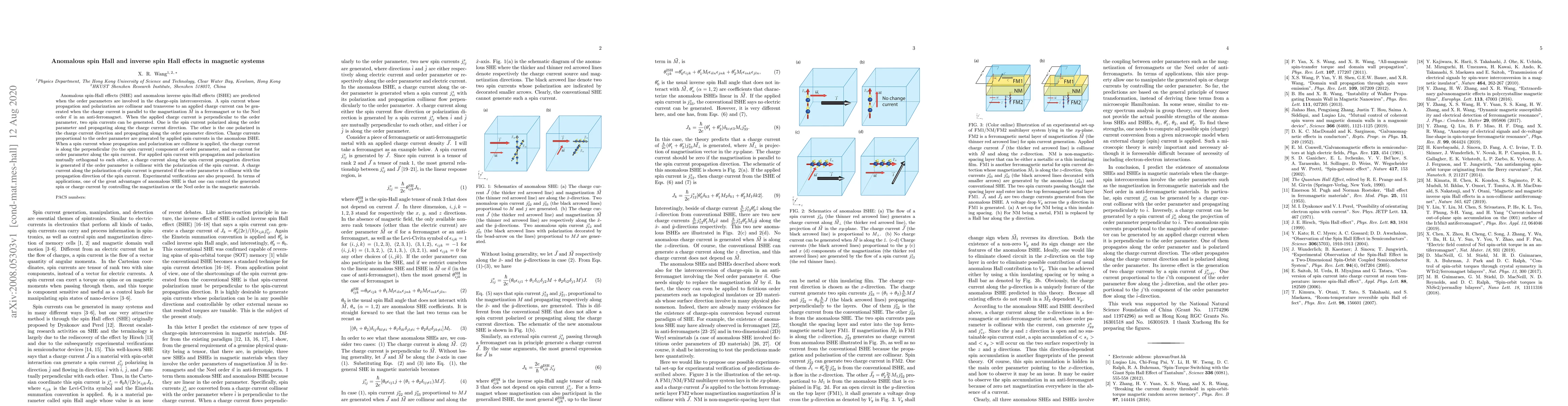 This paper explores anomalous spin-Hall and inverse spin-Hall effects in magnetic systems, where charge-spin interconversion is influenced by order parameters. It predicts distinct spin current behaviors based on the orientation of applied charge currents relative to magnetization or Neel order, proposing potential experimental verifications and applications in controlling spin or charge currents via magnetic order.