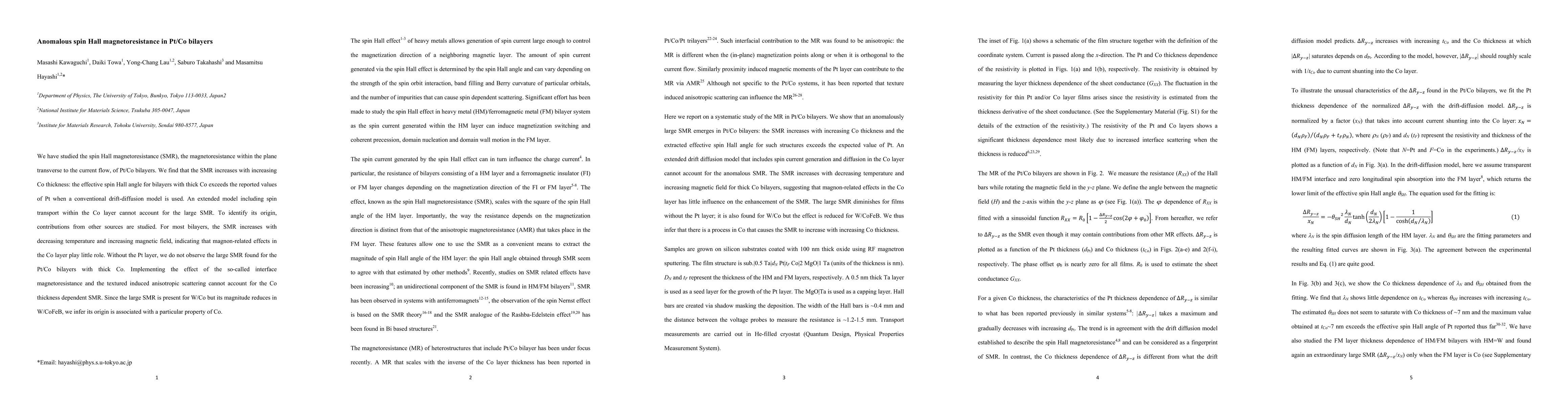 The paper presents detailed experimental and modeling studies on SMR in Pt/Co bilayers, revealing anomalous behavior not explained by conventional models.