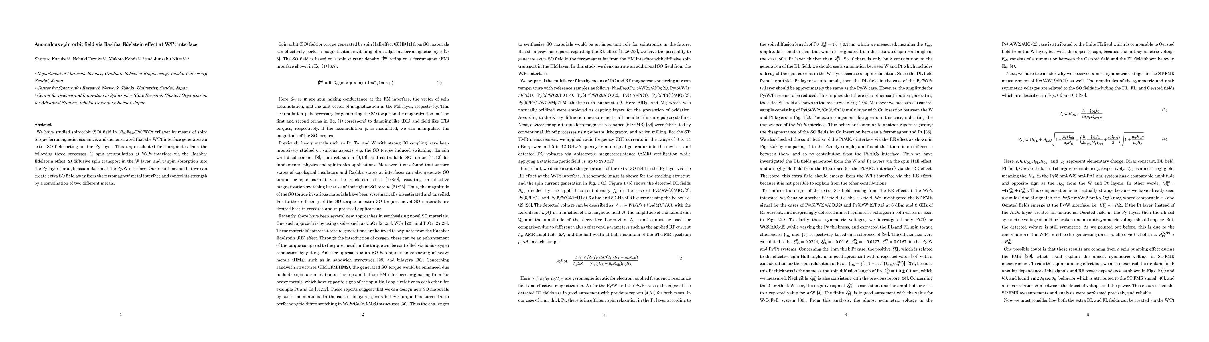 This study reveals an anomalous spin-orbit field at the W/Pt interface in a Ni$_{80}$Fe$_{20}$/Py/W/Pt trilayer system, generated via the Rashba-Edelstein effect, spin transport through the W layer, and spin absorption at the Py/W interface. This enables the creation of an extra spin-orbit field away from the ferromagnet/metal interface, controllable through metal selection.