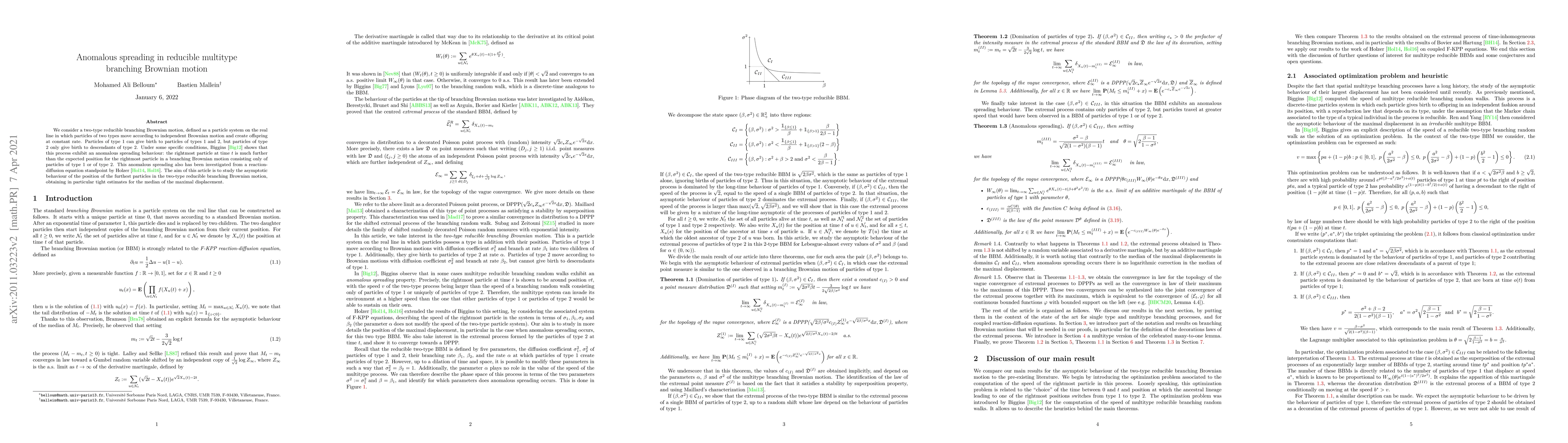 This paper investigates the anomalous spreading behavior in a two-type reducible branching Brownian motion, where particles of type 1 can produce both types, while type 2 only reproduces itself. The study focuses on the asymptotic behavior of the furthest particles, providing tight estimates for the median of the maximal displacement.