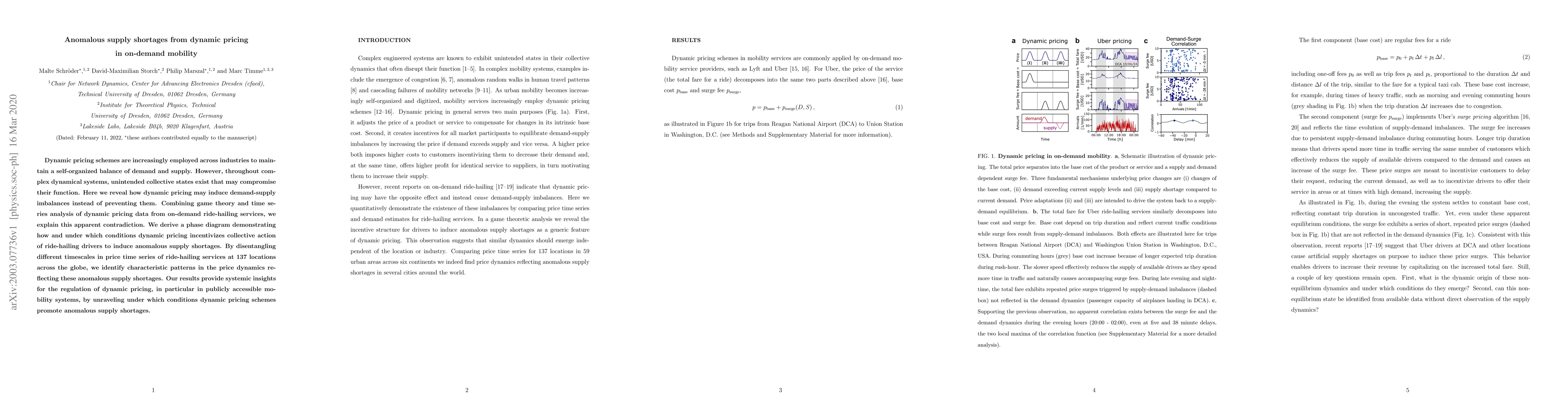 Dynamic pricing schemes are increasingly employed across industries to maintain a self-organized balance of demand and supply. However, throughout complex dynamical systems, unintended collective states exist that may compromise their function. Here we reveal how dynamic pricing may induce demand-supply imbalances instead of preventing them. Combining game theory and time series analysis of dynamic pricing data from on-demand ride-hailing services, we explain this apparent contradiction. We derive a phase diagram demonstrating how and under which conditions dynamic pricing incentivizes collective action of ride-hailing drivers to induce anomalous supply shortages. By disentangling different timescales in price time series of ride-hailing services at 137 locations across the globe, we identify characteristic patterns in the price dynamics reflecting these anomalous supply shortages. Our results provide systemic insights for the regulation of dynamic pricing, in particular in publicly accessible mobility systems, by unraveling under which conditions dynamic pricing schemes promote anomalous supply shortages.