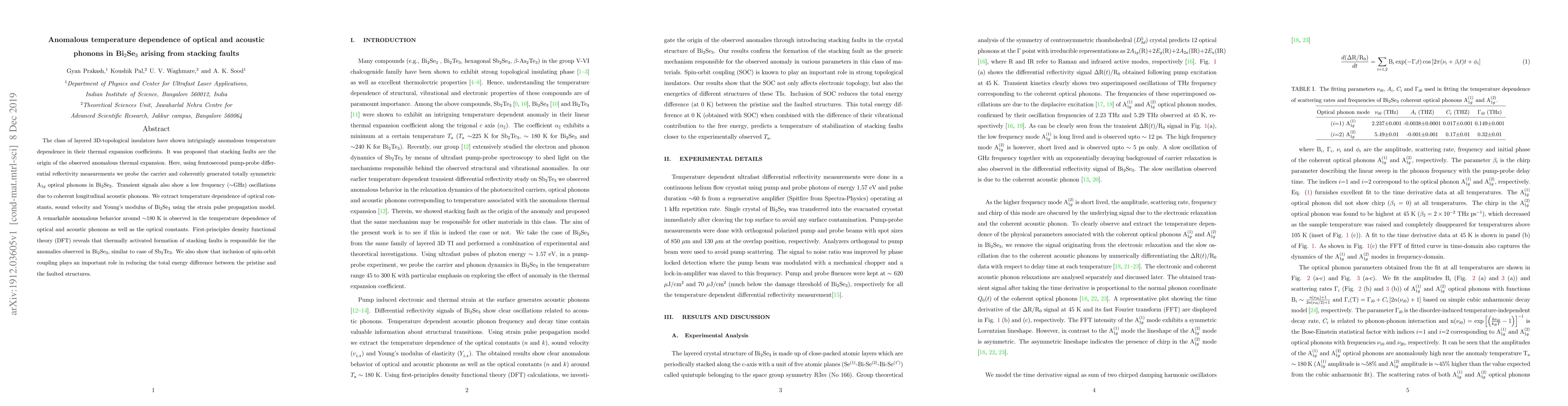 Researchers discovered anomalous temperature behavior in Bi2Se3 due to stacking faults, affecting optical and acoustic phonons as well as material properties. First-principles calculations confirmed the role of thermally activated faults and spin-orbit coupling in these anomalies.
