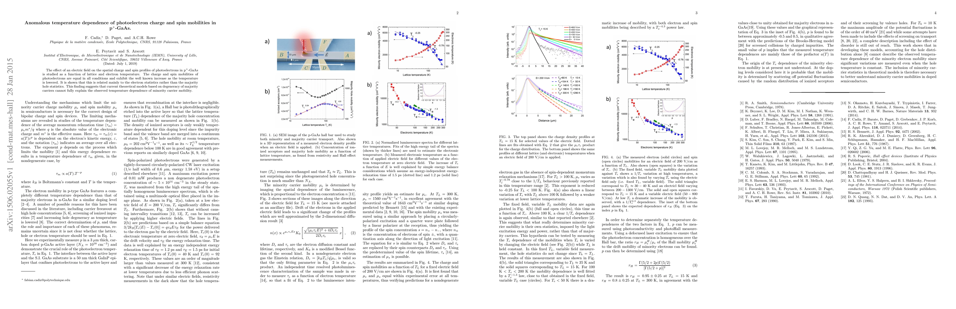 The effect of an electric field on the spatial charge and spin profiles of photoelectrons in p+-GaAs is studied as a function of lattice and electron temperature. The charge and spin mobilities of photoelectrons are equal in all conditions and exhibit the well known increase as the temperature is lowered. It is shown that this is related mainly to the electron statistics rather than the majority hole statistics. This finding suggests that current theoretical models based on degeneracy of majority carriers cannot fully explain the observed temperature dependence of minority carrier mobility.