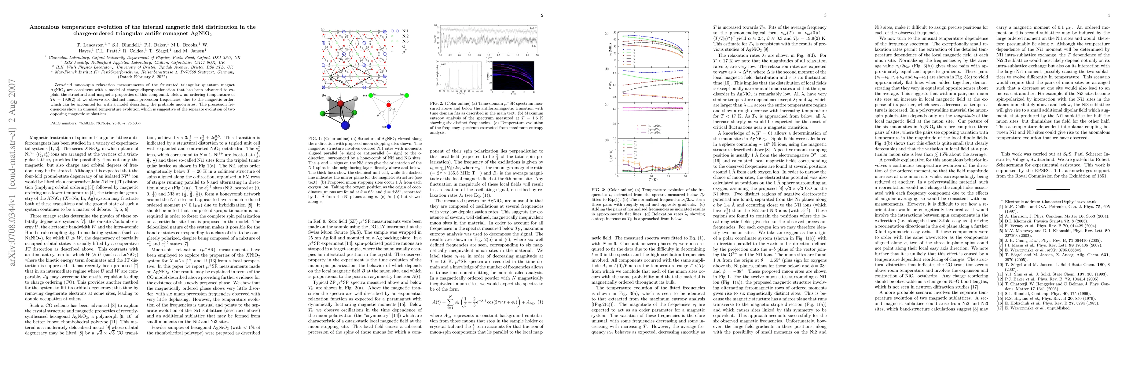 This study reveals unusual temperature-dependent behavior in the magnetic field distribution of the charge-ordered triangular antiferromagnet AgNiO2, as evidenced by zero-field muon-spin relaxation measurements. The observed six distinct muon precession frequencies suggest separate evolution of two opposing magnetic sublattices below the ordering temperature.