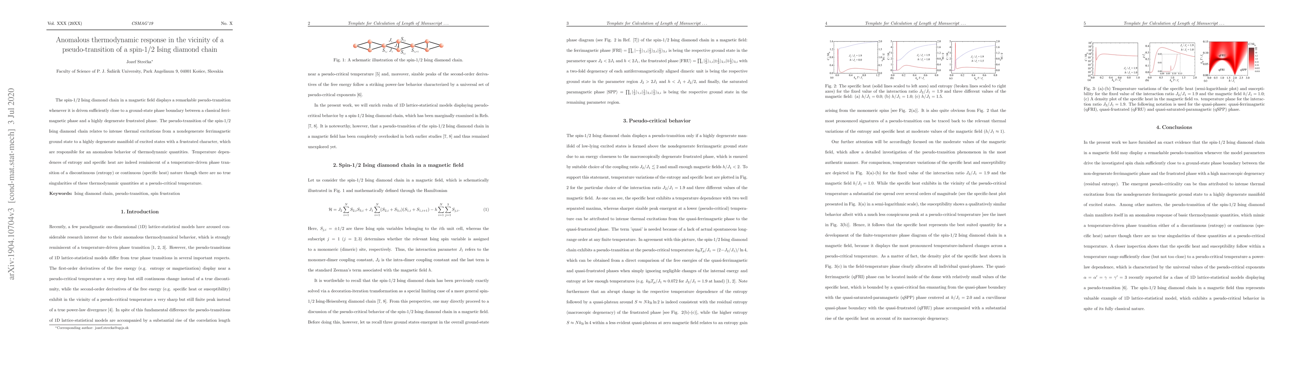 This paper investigates the anomalous thermodynamic response of a spin-1/2 Ising diamond chain near a pseudo-transition, revealing intense thermal excitations that mimic a phase transition. Despite the absence of true singularities, the temperature dependences of entropy and specific heat exhibit behaviors akin to a discontinuous or continuous phase transition.
