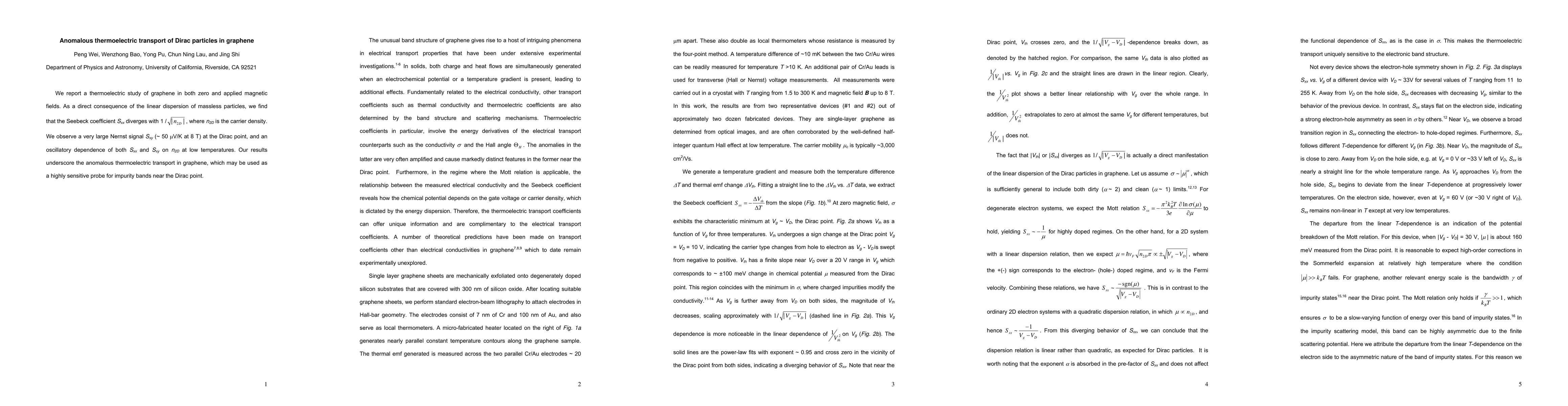 This research reveals anomalous thermoelectric transport in graphene, showing a divergent Seebeck coefficient with carrier density and a large Nernst signal at the Dirac point, highlighting its potential as a sensitive probe for impurity bands.