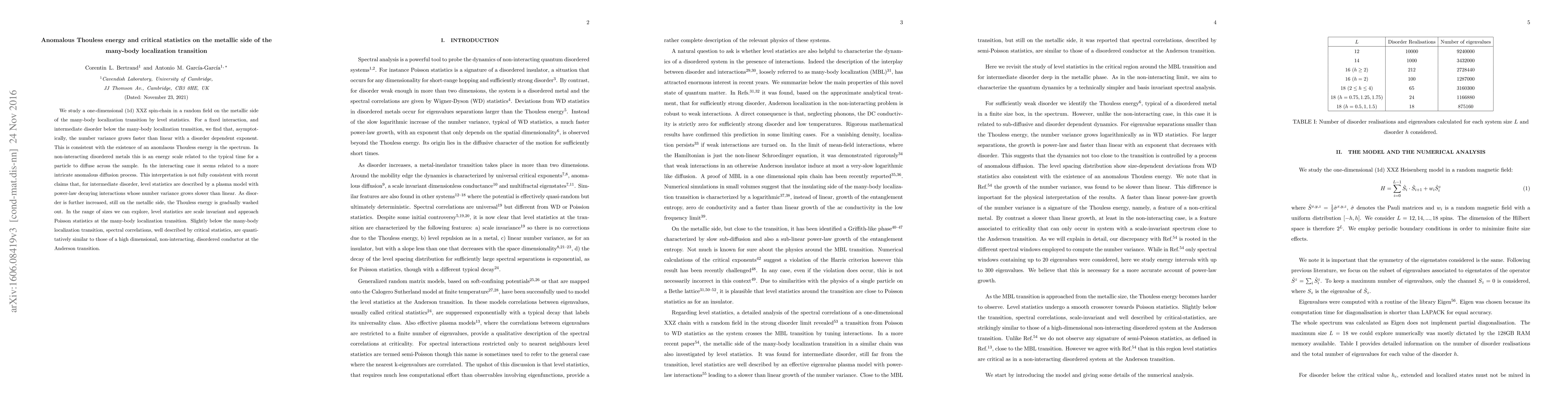 This paper investigates the level statistics of a 1d XXZ spin-chain in a random field, finding an anomalous Thouless energy on the metallic side of the many-body localization transition. The number variance grows faster than linear with a disorder-dependent exponent, indicating an intricate diffusion process in the interacting case.