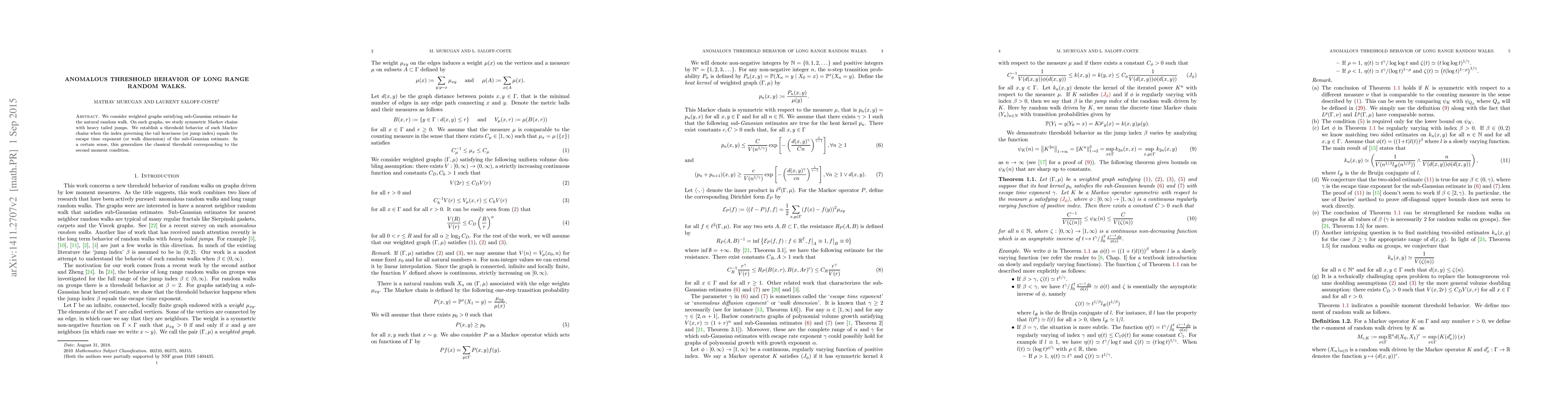 Researchers studied threshold behavior of Markov chains with heavy-tailed jumps on weighted graphs with sub-Gaussian estimates. They found a threshold at the escape time exponent equals the jump index, generalizing classical thresholds for second moment conditions.