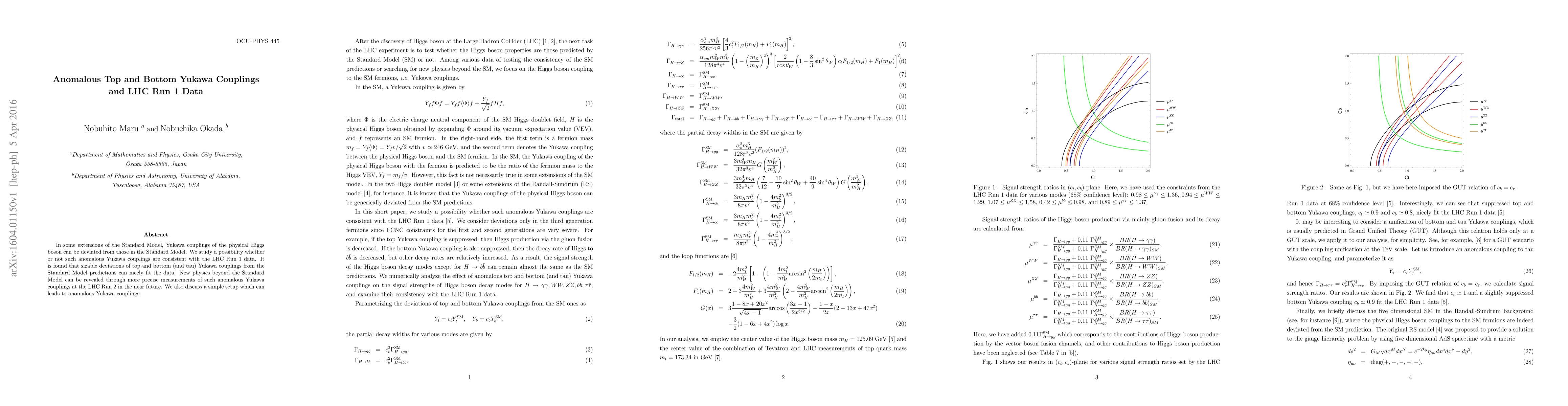 In some extensions of the Standard Model, Yukawa couplings of the physical Higgs boson can be deviated from those in the Standard Model. We study a possibility whether or not such anomalous Yukawa couplings are consistent with the LHC Run 1 data. It is found that sizable deviations of top and bottom (and tau) Yukawa couplings from the Standard Model predictions can nicely fit the data. New physics beyond the Standard Model can be revealed through more precise measurements of such anomalous Yukawa couplings at the LHC Run 2 in the near future. We also discuss a simple setup which can leads to anomalous Yukawa couplings.