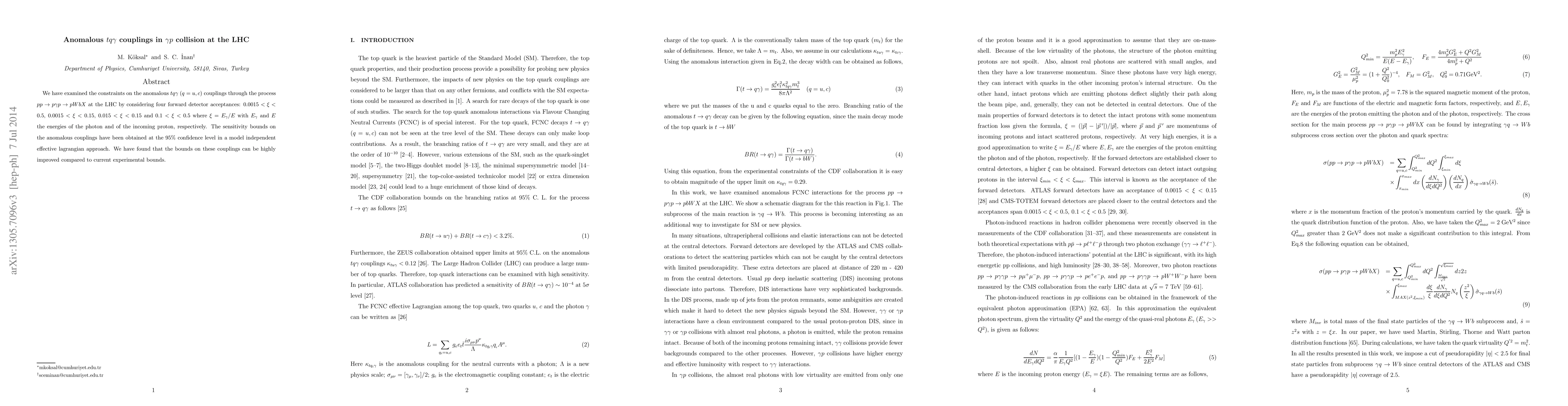 This paper investigates the constraints on anomalous $tq\gamma$ couplings in $\gamma p$ collisions at the LHC, finding significant improvements over current experimental limits through a model-independent effective Lagrangian approach. The study utilizes three forward detector acceptances to enhance sensitivity bounds at the $95\%$ confidence level.