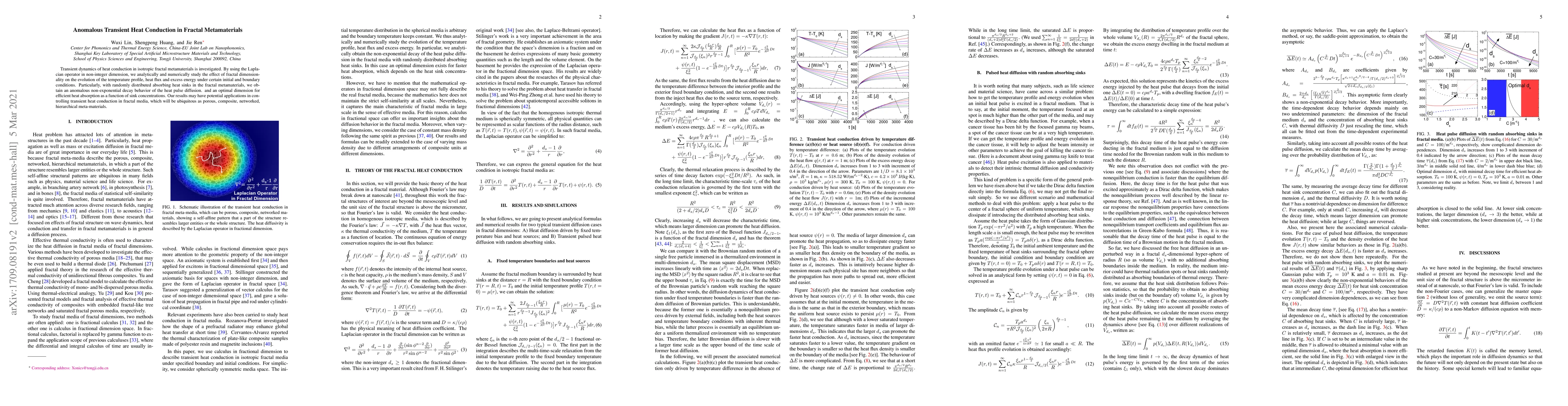 This paper explores the transient heat conduction in fractal metamaterials, revealing an anomalous non-exponential decay of heat pulse diffusion due to randomly distributed heat sinks. It identifies an optimal fractal dimension for efficient heat absorption, with implications for controlling heat conduction in various porous and composite materials.