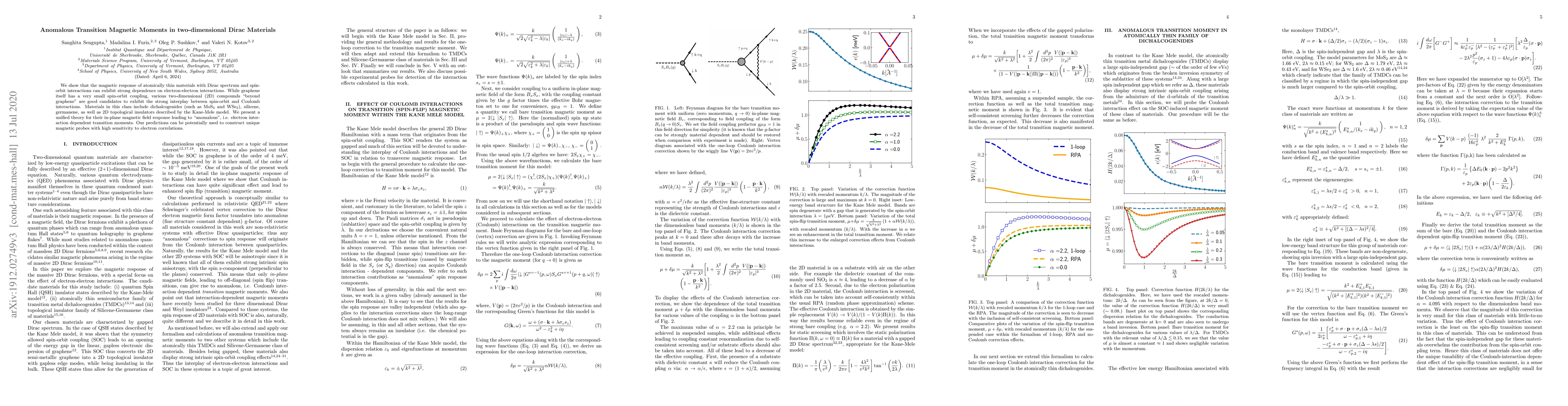 We show that the magnetic response of atomically thin materials with Dirac spectrum and spin-orbit interactions can exhibit strong dependence on electron-electron interactions. While graphene itself has a very small spin-orbit coupling, various two-dimensional (2D) compounds "beyond graphene" are good candidates to exhibit the strong interplay between spin-orbit and Coulomb interactions. Materials in this class include dichalcogenides (such as MoS$_2$ and WSe$_2$), silicene, germanene, as well as 2D topological insulators described by the Kane-Mele model. We present a unified theory for their in-plane magnetic field response leading to "anomalous", i.e. electron interaction dependent transition moments. Our predictions can be potentially used to construct unique magnetic probes with high sensitivity to electron correlations.