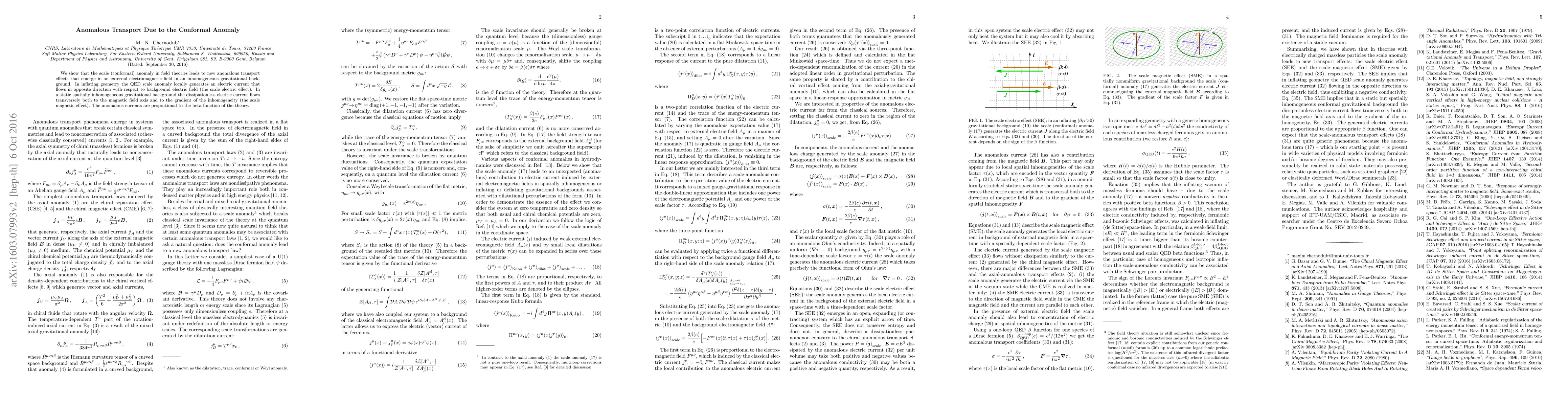 This paper demonstrates that the conformal anomaly in field theories induces new anomalous transport phenomena in an external electromagnetic field within an inhomogeneous gravitational background. It reveals the scale electric effect in an inflating geometry and the scale magnetic effect in static gravitational inhomogeneity, both driven by the theory's beta function.