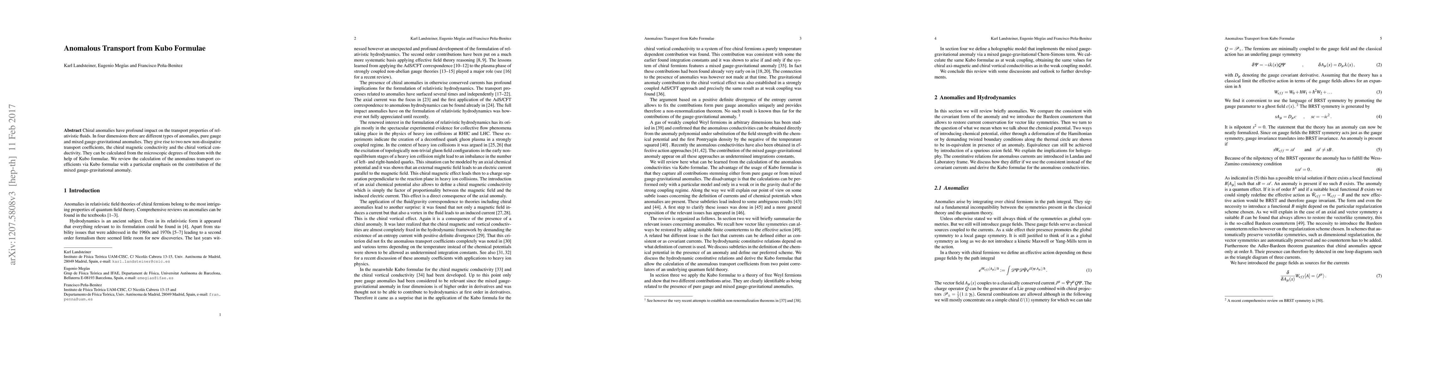 The paper presents a detailed review and calculation of anomalous transport coefficients using Kubo formulae, specifically highlighting the contribution of mixed gauge-gravitational anomalies, which extends the understanding of chiral effects in fluid dynamics.