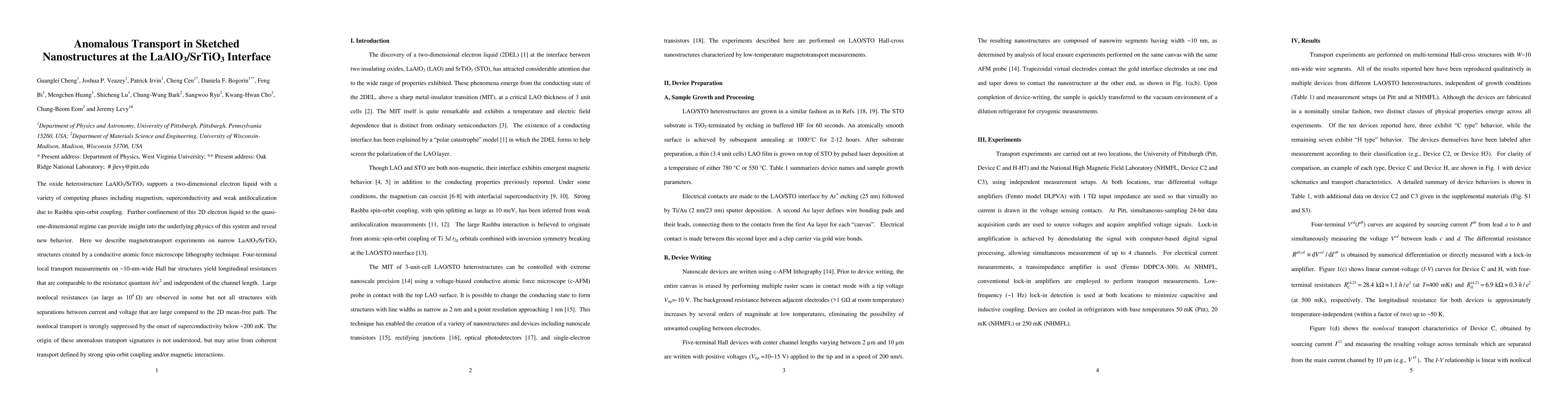 This study investigates magnetotransport in sketched nanostructures of the LaAlO3/SrTiO3 interface, revealing anomalous longitudinal and nonlocal resistances, suggesting new physics possibly tied to strong spin-orbit coupling and magnetic interactions, with superconductivity onset suppressing nonlocal transport.