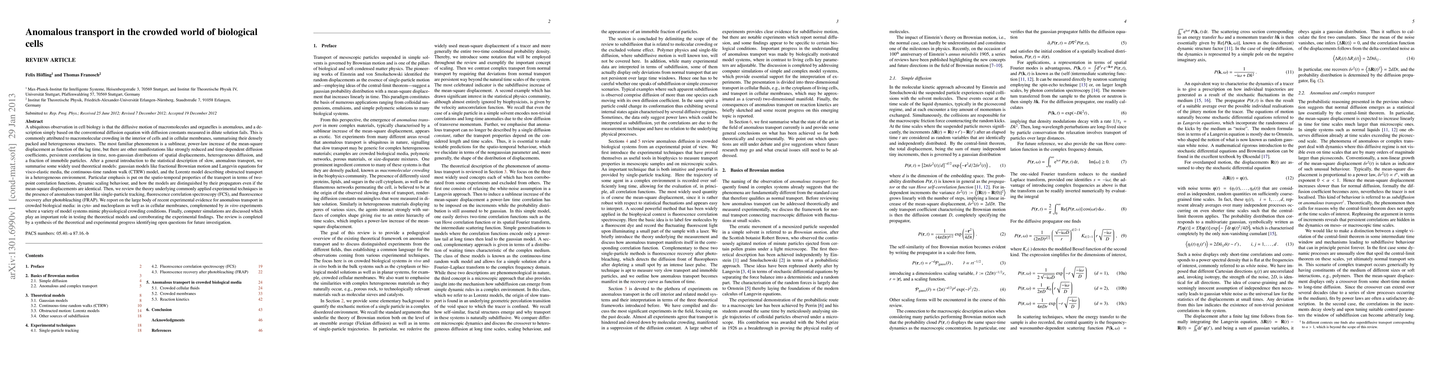 Recent research reveals that diffusion in crowded biological cells deviates from conventional diffusion equations, with anomalous transport manifesting as power-law increases in displacement and reduced diffusion coefficients. Experimental techniques such as single-particle tracking and fluorescence recovery after photobleaching have confirmed these findings, highlighting the need for new theoretical models to explain this phenomenon.