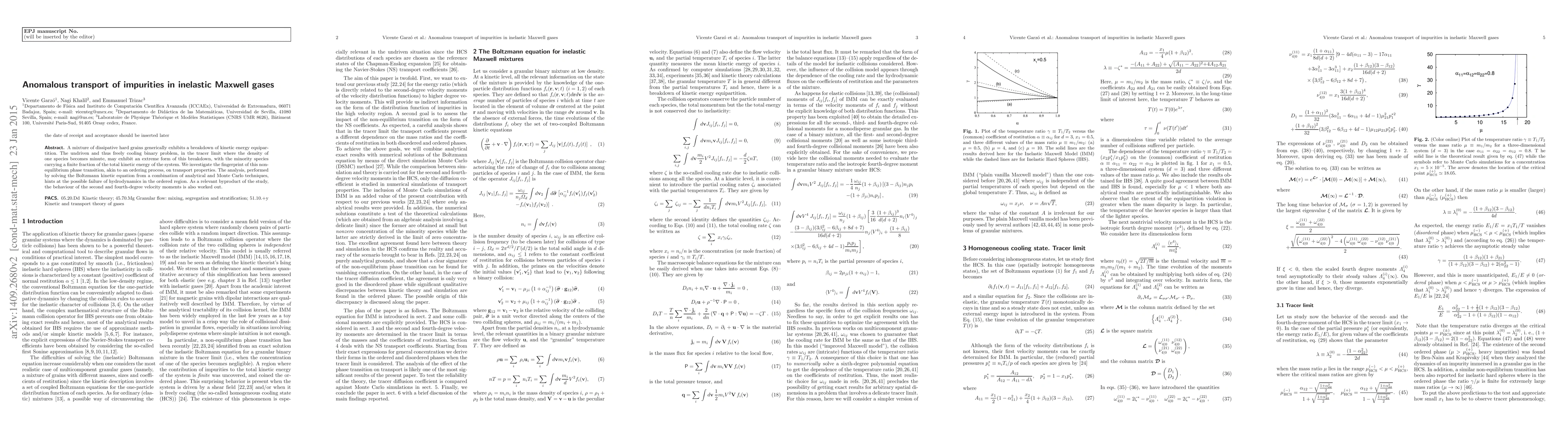 A mixture of dissipative hard grains generically exhibits a breakdown of kinetic energy equipartition. The undriven and thus freely cooling binary problem, in the tracer limit where the density of one species becomes minute, may exhibit an extreme form of this breakdown, with the minority species carrying a finite fraction of the total kinetic energy of the system. We investigate the fingerprint of this non-equilibrium phase transition, akin to an ordering process, on transport properties. The analysis, performed by solving the Boltzmann kinetic equation from a combination of analytical and Monte Carlo techniques, hints at the possible failure of hydrodynamics in the ordered region. As a relevant byproduct of the study, the behaviour of the second and fourth-degree velocity moments is also worked out.