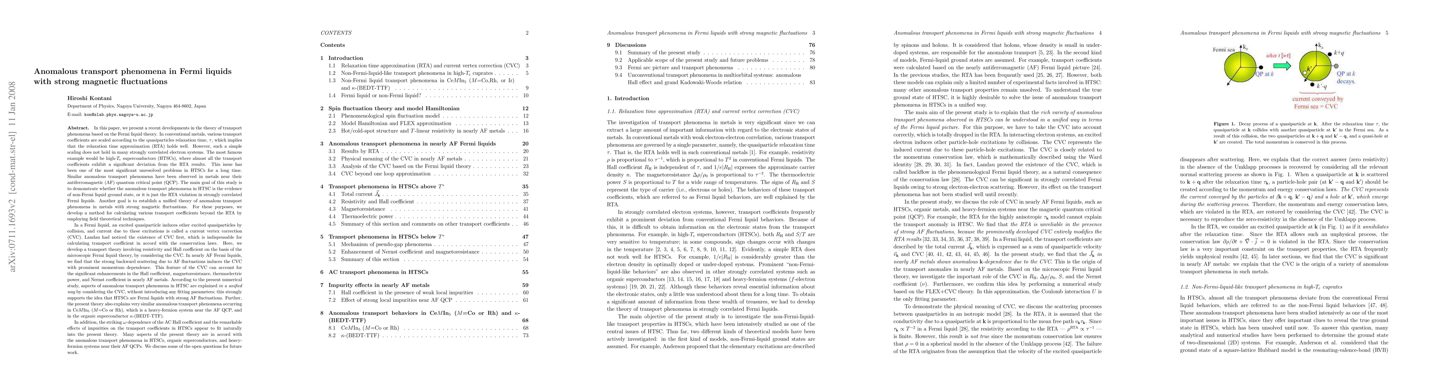 In many strongly correlated electron systems, remarkable violation of the relaxation time approximation (RTA) is observed. The most famous example would be high-Tc superconductors (HTSCs), and similar anomalous transport phenomena have been observed in metals near their antiferromagnetic (AF) quantum critical point (QCP). Here, we develop a transport theory involving resistivity and Hall coefficient on the basis of the microscopic Fermi liquid theory, by considering the current vertex correction (CVC). In nearly AF Fermi liquids, the CVC accounts for the significant enhancements in the Hall coefficient, magnetoresistance, thermoelectric power, and Nernst coefficient in nearly AF metals. According to the numerical study, aspects of anomalous transport phenomena in HTSC are explained in a unified way by considering the CVC, without introducing any fitting parameters; this strongly supports the idea that HTSCs are Fermi liquids with strong AF fluctuations. In addition, the striking \omega-dependence of the AC Hall coefficient and the remarkable effects of impurities on the transport coefficients in HTSCs appear to fit naturally into the present theory. The present theory also explains very similar anomalous transport phenomena occurring in CeCoIn5 and CeRhIn5, which is a heavy-fermion system near the AF QCP, and in the organic superconductor \kappa-(BEDT-TTF).