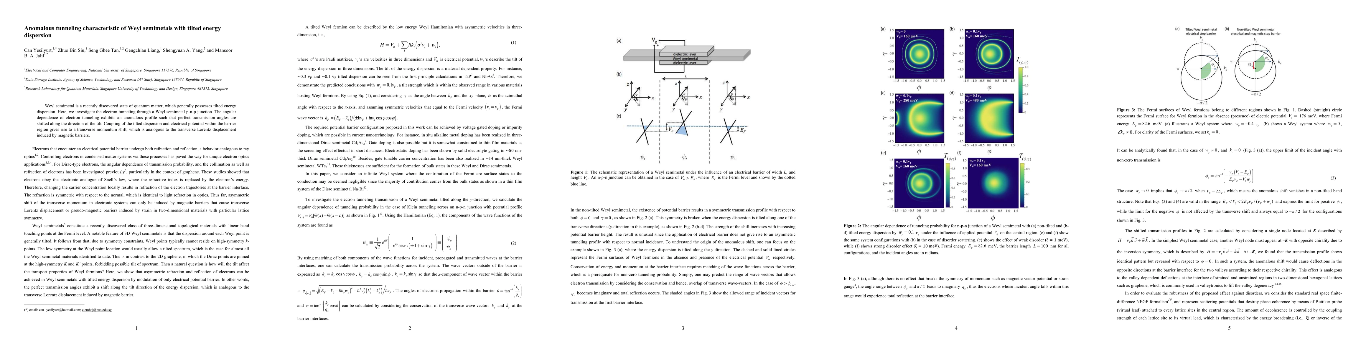This paper investigates electron tunneling through a Weyl semimetal p-n-p junction, revealing an anomalous tunneling profile where perfect transmission angles shift due to the material's tilted energy dispersion, akin to the transverse Lorentz displacement seen in magnetic barriers.