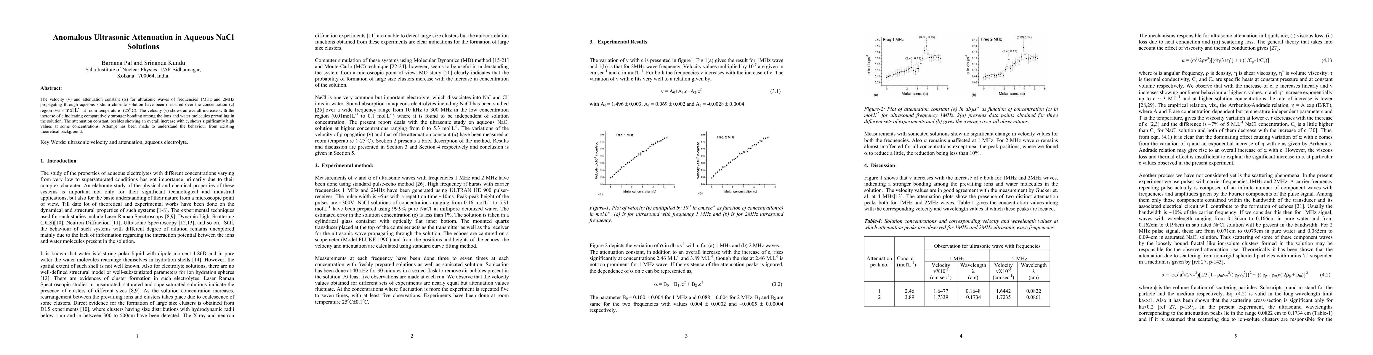 The research identifies anomalous ultrasonic attenuation in aqueous NaCl solutions attributed to the formation of ion-solvent clusters, supported by various experimental and theoretical findings, though direct evidence for large cluster sizes remains elusive.