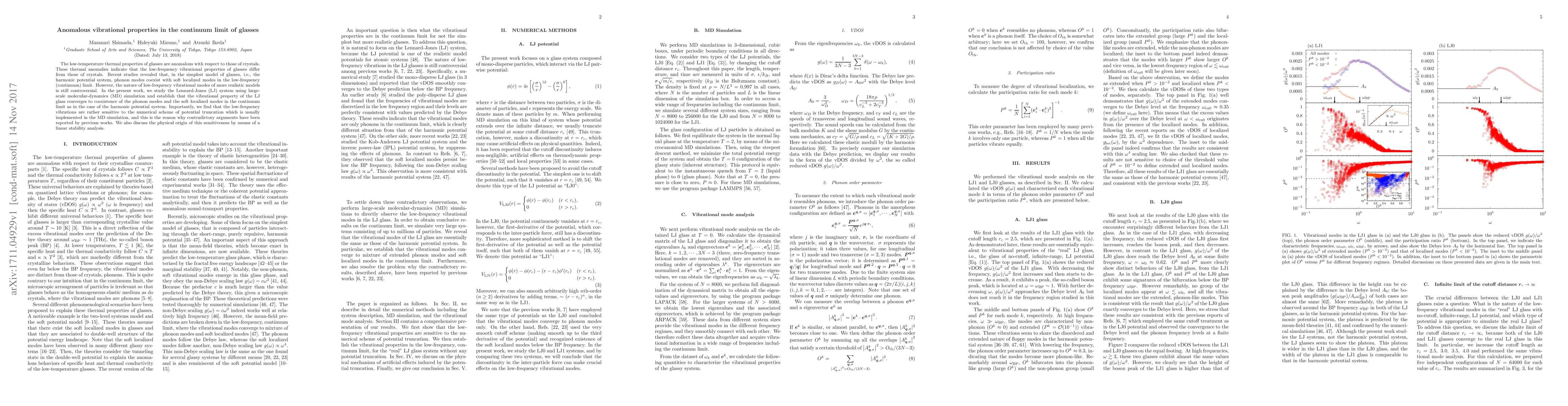 This research demonstrates that in the Lennard-Jones glass system, low-frequency vibrational modes converge to a coexistence of phonon and soft localized modes in the continuum limit, akin to the harmonic potential system. The study highlights the sensitivity of these low-frequency vibrations to the numerical truncation methods used in molecular dynamics simulations, explaining previous contradictory findings.