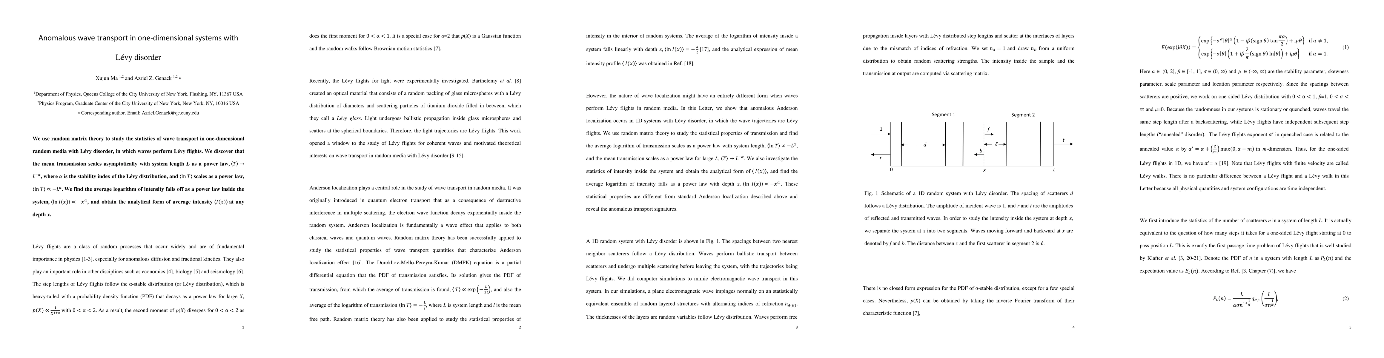 Researchers used random matrix theory to study wave transport in one-dimensional systems with Levy disorder, finding that waves exhibit anomalous transport behavior. This discovery has implications for understanding complex systems and the behavior of particles in disordered media.