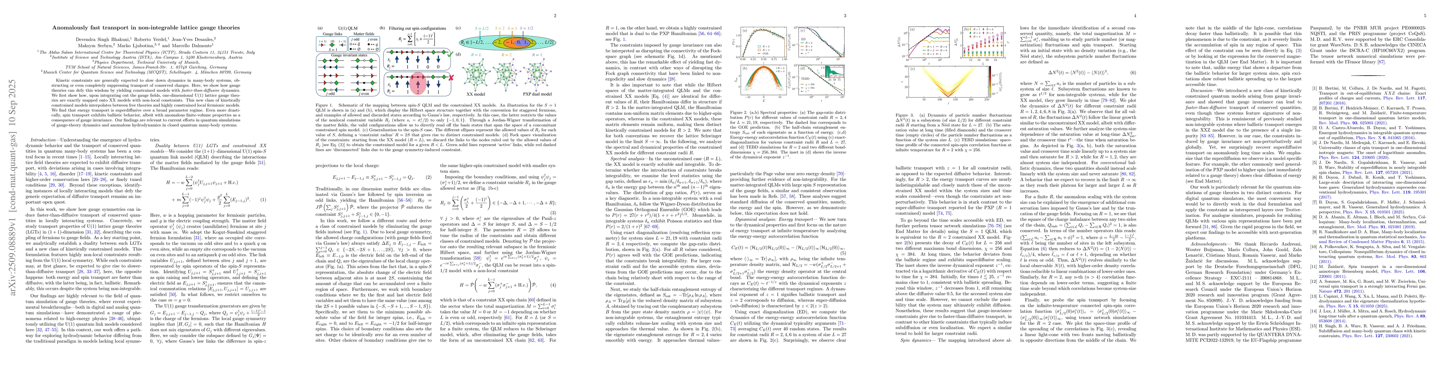 Kinetic constraints are generally expected to slow down dynamics in many-body systems, obstructing or even completely suppressing transport of conserved charges. Here, we show how gauge theories can defy this wisdom by yielding constrained models with faster-than-diffusive dynamics. We first show how, upon integrating out the gauge fields, one-dimensional U(1) lattice gauge theories are exactly mapped onto XX models with non-local constraints. This new class of kinetically constrained models interpolates between free theories and highly constrained local fermionic models. We find that energy transport is superdiffusive over a broad parameter regime. Even more drastically, spin transport exhibits ballistic behavior, albeit with anomalous finite-volume properties as a consequence of gauge invariance. Our findings are relevant to current efforts in quantum simulations of gauge-theory dynamics and anomalous hydrodynamics in closed quantum many-body systems.