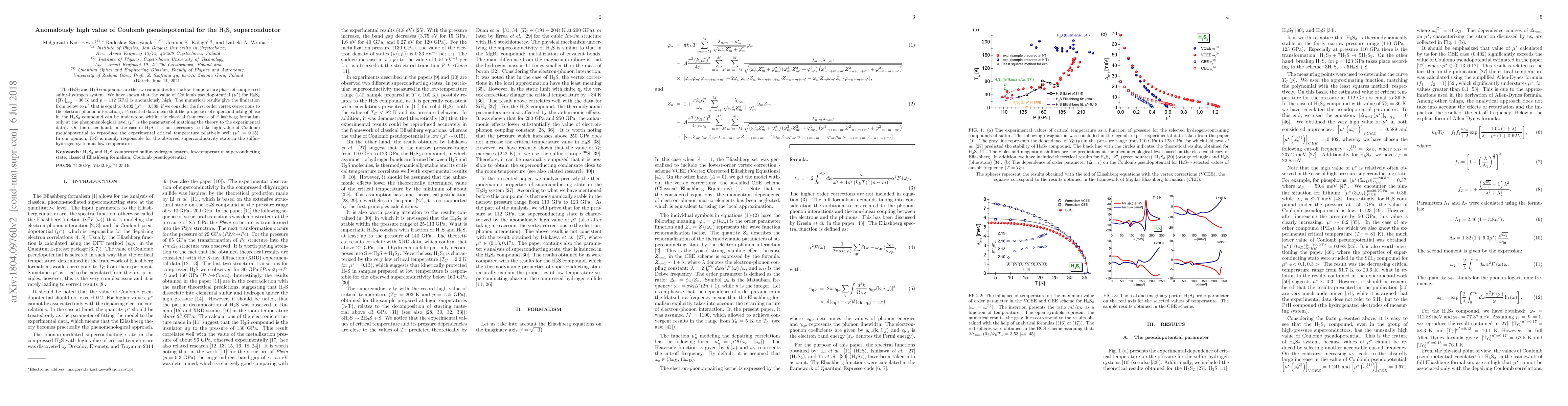 The ${\rm H_{5}S_{2}}$ and ${\rm H_{2}S}$ compounds are the two candidates for the low-temperature phase of compressed sulfur-hydrogen system. We have shown that the value of Coulomb pseudopotential ($\mu^{\star}$) for ${\rm H_{5}S_{2}}$ ($\left[T_{C}\right]_{\rm exp}=36$~K and $p=112$~GPa) is anomalously high. The numerical results give the limitation from below to $\mu^{\star}$ that is equal to $0.402$ ($\mu^{\star}=0.589$, if we consider the first order vertex corrections to the electron-phonon interaction). Presented data mean that the properties of superconducting phase in the ${\rm H_{5}S_{2}}$ compound can be understood within the classical framework of Eliashberg formalism only at the phenomenological level ($\mu^{\star}$ is the parameter of matching the theory to the experimental data). On the other hand, in the case of ${\rm H_{2}S}$ it is not necessary to take high value of Coulomb pseudopotential to reproduce the experimental critical temperature relatively well ($\mu^{\star}=0.15$). In our opinion, ${\rm H_{2}S}$ is mainly responsible for the observed superconductivity state in the sulfur-hydrogen system at low temperature.