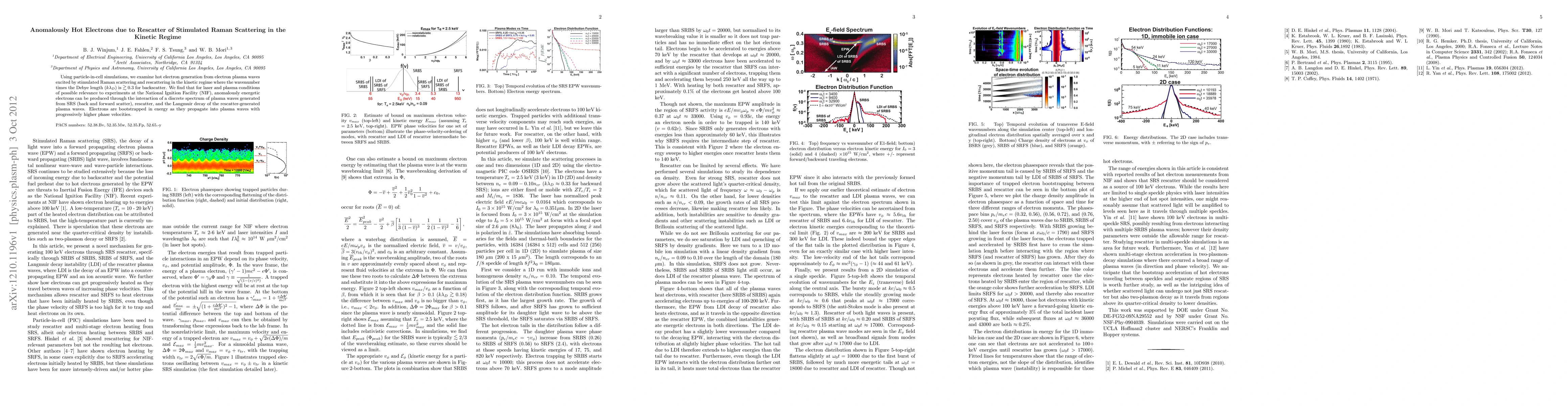 Researchers used particle-in-cell simulations to show that stimulated Raman scattering can produce anomalously hot electrons through rescattering in plasma waves with high phase velocities. This process can lead to the bootstrap of energetic electrons in experiments like those at the National Ignition Facility.