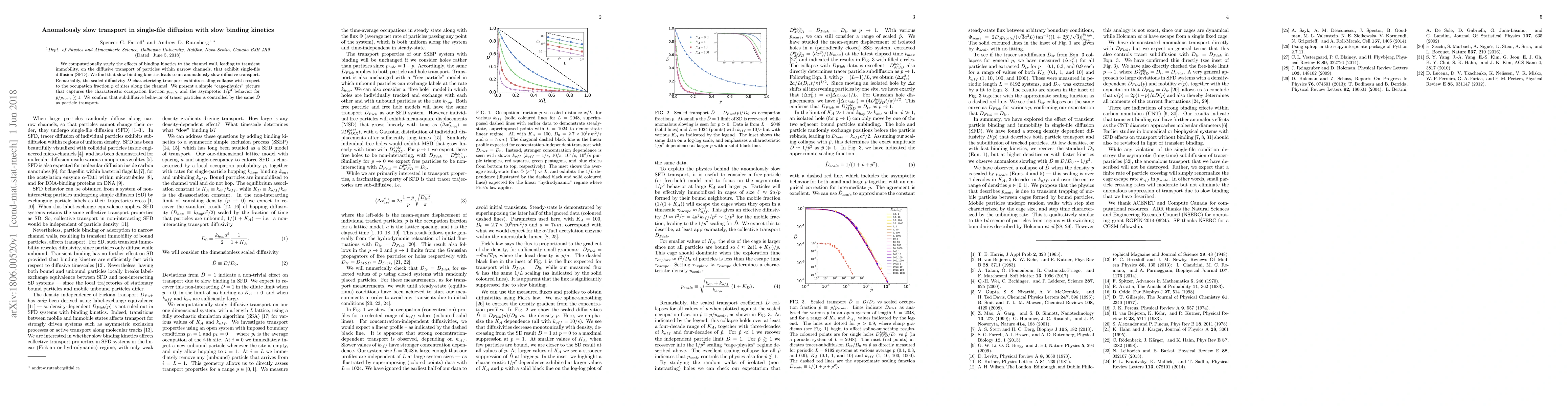 Slow binding kinetics to channel walls causes anomalously slow transport in single-file diffusion. The scaled diffusivity shows scaling collapse with respect to the occupation fraction of sites along the channel.