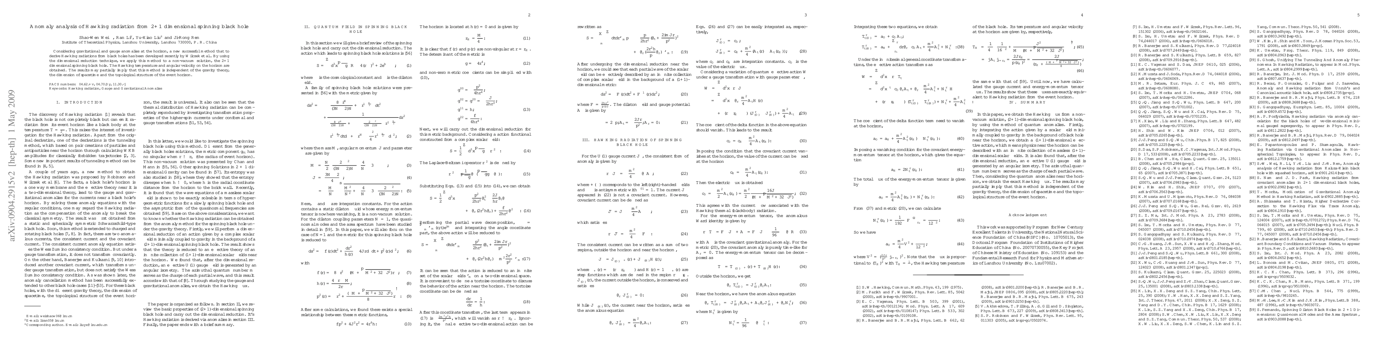 Considering gravitational and gauge anomalies at the horizon, a new successful method that to derive Hawking radiations from black holes has been developed recently by Wilczek et al.. By using the dimensional reduction technique, we apply this method to a non-vacuum solution, the 2+1 dimensional spinning black hole. The Hawking temperature and angular velocity on the horizon are obtained. The results may partially imply that this method is independent of the gravity theory, the dimension of spacetime and the topological structure of the event horizon.
