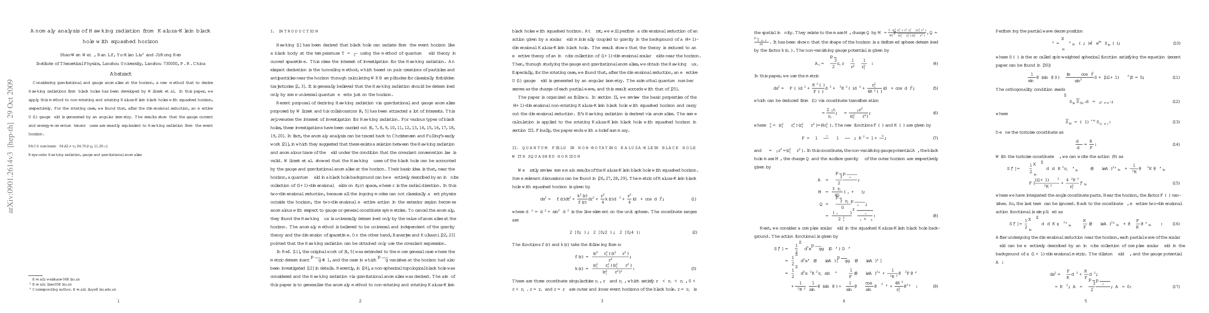 This paper employs a novel method developed by Wilczek et al. to analyze Hawking radiation from Kaluza-Klein black holes with squashed horizons. It finds that for rotating black holes, an effective U(1) gauge field emerges, leading to gauge current and energy-momentum tensor fluxes equivalent to Hawking radiation.